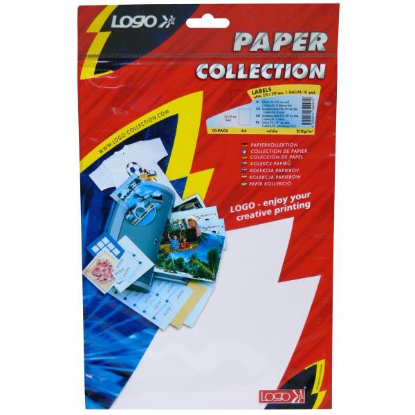 Logo etikety 210mm x 297mm, A4, matné, bílé, 1 etiketa, 140g/m2, baleno po 10 ks, pro inkoustové a laserové tiskárny