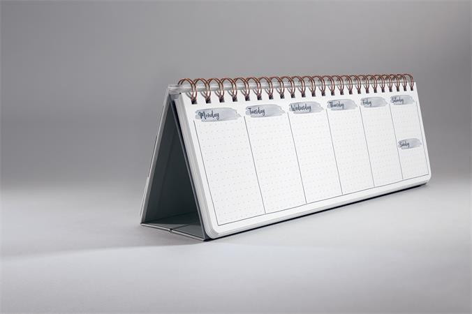 Nedatovaný stolní kalendář z řady Jolie vám umožňuje zvolit si vlastní datum zahájení a ukončení. Kreativní design je ideální pro každého, kdo miluje ruční písmo a psaní do deníku.