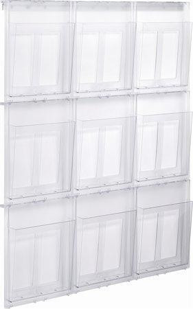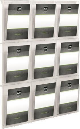 Držák na katalogy "Placativ", transparentní, nástěnný, A4, 9 oddílů, HELIT H6812102