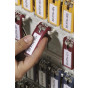 Pro vložení popisovacího štítku lze klip snadno otevřít bez nutnosti zbavení se závěsného kroužku.