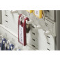 Tento jedinečný plastový přívěsek na klíče umožňuje dokonalý přehled o klíčích ve skříňce díky tomu, že klíče jsou naplocho uloženy za klíčenkou a popisovací štítky jsou tak kdykoli čitelné. Klíčenka je speciálně designovaná, aby byla zavěšena na háčcích a speciálních kolejích, jedině tato kombinace zajistí, že klíčenka visí nehybně na svém místě.