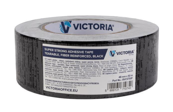 Lepicí páska, černá, 48 mm x 50 m, textilní, super pevná, VICTORIA FACILITY