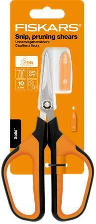 Špičaté univerzální zastřihávací nůžky Fiskars jsou ideální pro přesné stříhání květin, rostlin a drobných větviček až do průměru 10 mm. Ergonomická rukojeť SoftGrip pro pohodlné drženíVhodné pro praváky i levákyMateriál čepele: nerezová ocelMaximální průměr střihu: 10 mmDélka: 23,8 cmHmotnost: 73 gBarva: černá s oranžovými prvkyKontaktní informace výrobce/prvního distributora v EU:Fiskars GroupKeilalahdentie 10, Espoo 2150, Finlandcustomer.service@fiskars.com