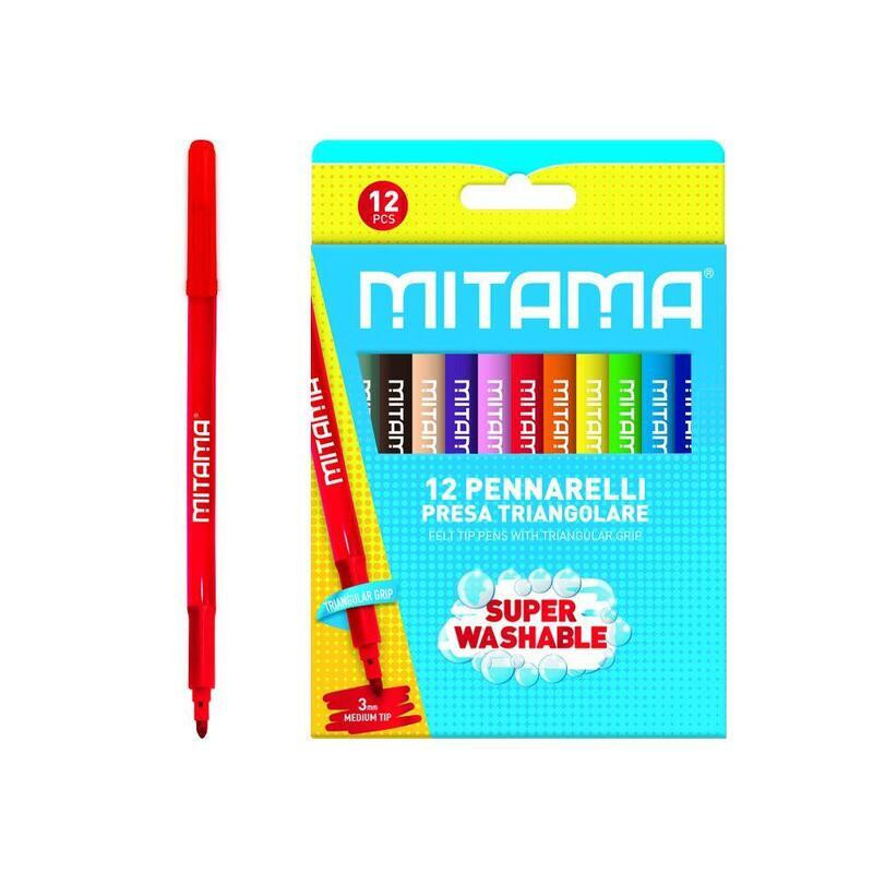 Fixy, sada, 12 barev, omyvatelné, 3 mm, trojhranné, MITAMA 61995
