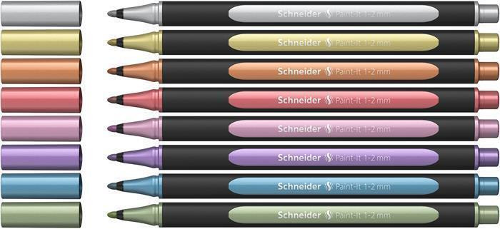 Akrylový popisovač "Paint-It 020", 8 různých kovových barev, sada, 1-2 mm, SCHNEIDER ML02011502