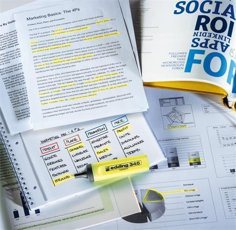 Zvýrazňovač plněný fluorescenční barvou. Zvýrazněný text zůstává čitelný a lze jej snadno zkopírovat.