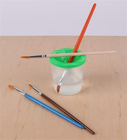 Kelímek na štětce s víčkem, které zabraňuje vylití vody.