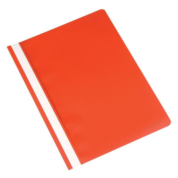 • Plastové rychlovazače naší privátní značky Q-Connect, kvalitní lehké složky pro uspořádání perforovaných dokumentů s průhlednou přední stranou a neprůhlednou barevnou zadní stranou