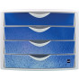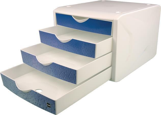 Zásuvkový box "Chameleon", 4 zásuvky, bílo-modrá, plast, HELIT