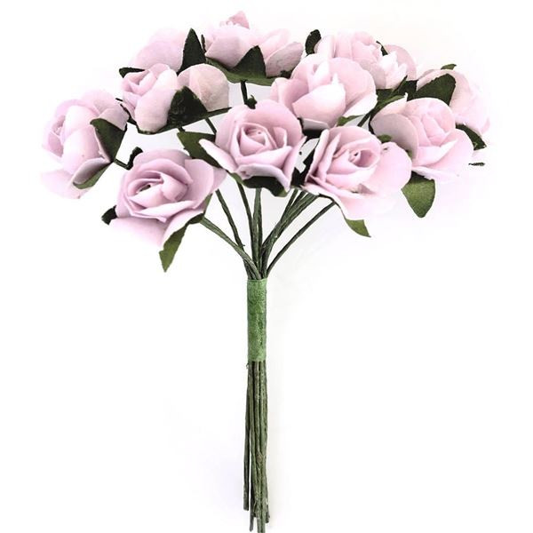 Papírové květiny na drátku - růže, růžové, 12 ks
