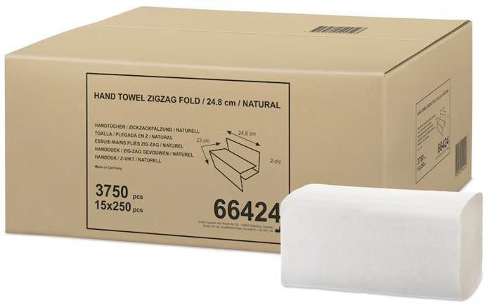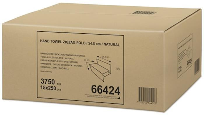 Papírové ručníky "Singlefold", přírodní, Z, 2-vrstvé, H3, 250 listů, 66424