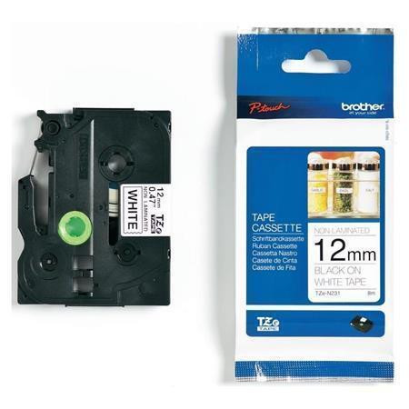 Páska "TZ-N231", bílá s černým potiskem, 12 mm x 8 m, BROTHER