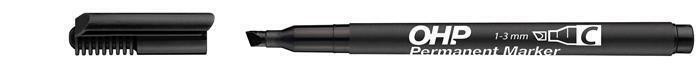 Permanentní popisovač, OHP, C, černá, 1-4mm, klínový hrot, ICO