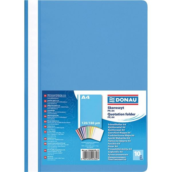 Plastové rychlovazače DONAU A4, světle modré,10 ks