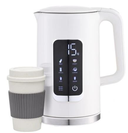 PLATINET RYCHLOVARNÁ KONVICE LCD 1,7L 5 TEPLOT + 450 ML CESTOVNÍ HRNEK, BÍLÁ