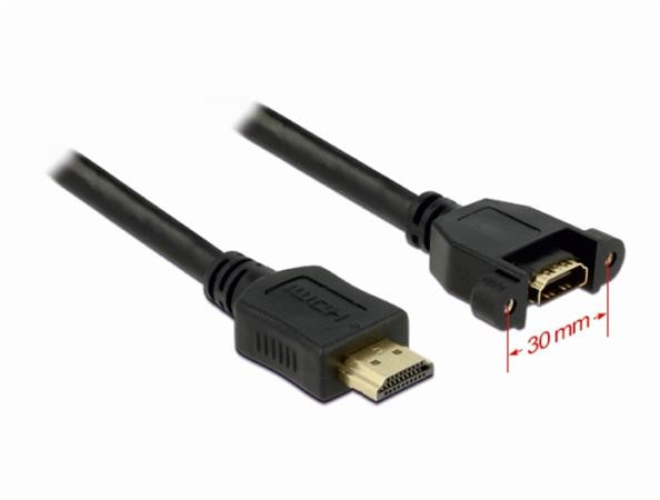 Delock kabel HDMI A samec > HDMI A samice přišroubovatelná 1 m