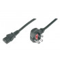Digitus Napájecí kabel, zástrčka UK, úhlová 90 ° - C13 M / F, 1,8 m, H05VV-F3G 0,75qmm, pojistka 5A, černá