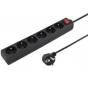 PremiumCord Prodlužovací přívod 230V 5m 6 zásuvek + vypínač, černý