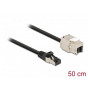 Delock Kabel ze zástrčky RJ45 na zásuvku RJ45 modulu Keystone, Cat.6A, délka 50 cm, černý