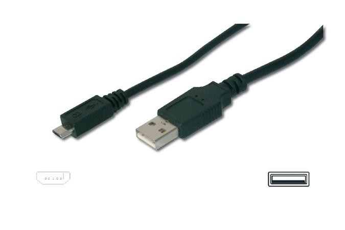 Digitus Připojovací kabel USB, typ A - micro B M/M, 1,8 m, kompatibilní s USB 2.0, bl