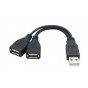 - Y kabel slouží pro připojení dvou USB mobilních telefonů nebo USB zařízení do USB portu, obě mohou být současně nabíjena nebo napájena.Současně jedno zařízení může přenášet data.