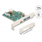 Delock PCI Express x1 karta na 1 x externí zásuvku USB Type-C™, PD, 30 W + 2 x externí zásuvky USB Typ-A, USB 5 Gbps
