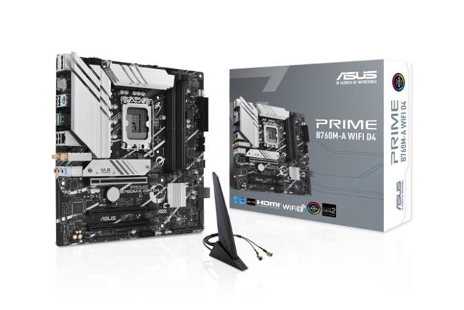 Intel® B760 (LGA 1700) mATX motherboard, PCIe 4.0, two M.2 slots, Realtek 2.5Gb Ethernet, Wi-Fi 6, DisplayPort, Dual HDMI®, SATA 6 Gbps, rear USB 3.2 Gen 2, front USB 3.2 Gen 1 Type-C®, Aura Sync