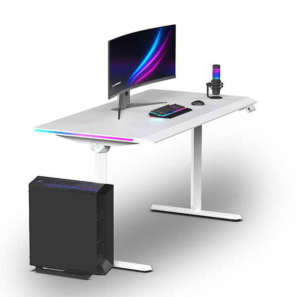 Masivní jednodílná deska stolu bez problému unese váhu kompletního herního setupu. Pokud je potřeba, můžete na desku bez obav postavit i samotnou PC case. Přední hrana desky je po celé šířce lehce zkosená, aby zvýšila komfort při používání stolu. Díky tomu má pracovní plocha výrazně ergonomičtější charakter, což ocení hlavně hráči, kteří si při hraní rádi opírají předloktí o desku. Toto řešení výrazně snižuje tlak na předloktí a zápěstí, takže se i při dlouhých herních seancích budete cítit pohodlněji. Vybrat si můžete z trojice barevných variant desky - černá deska ideální pro milovníky klasického gaming looku, bílá deska pro čistý, minimalistický setup, šedá deska – profesionálně působící varianta pro gaming i do pracovny.
