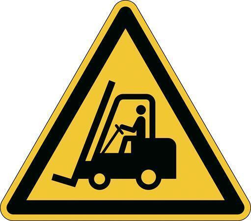 Podlahová výstražná nálepka "Pozor vysokozdvižný vozík”.