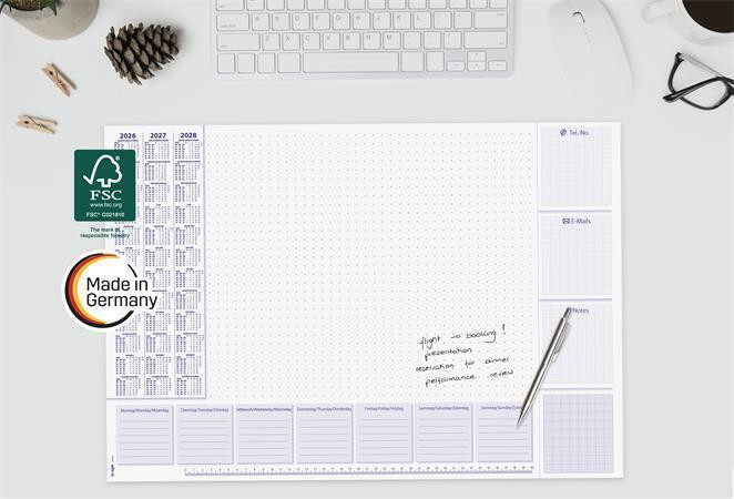 Podložka na stůl "Lilac", 595 x 410 mm, 3 roční a týdenní kalendář, SIGEL H6355