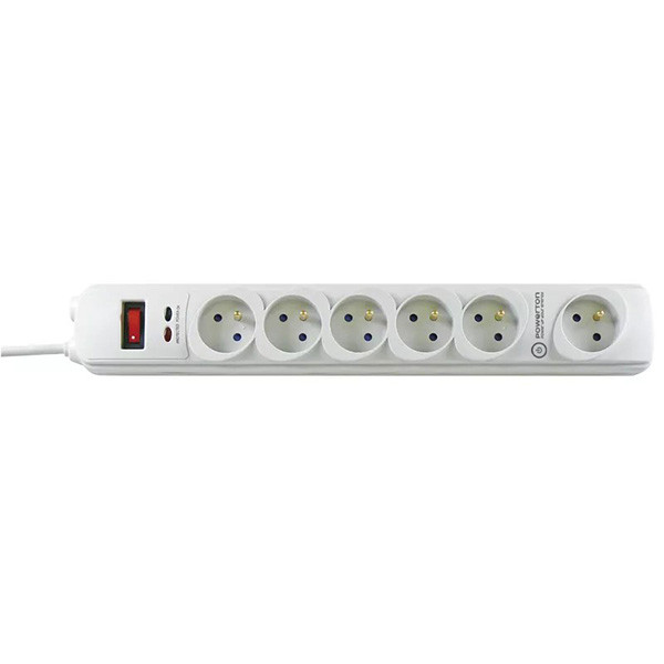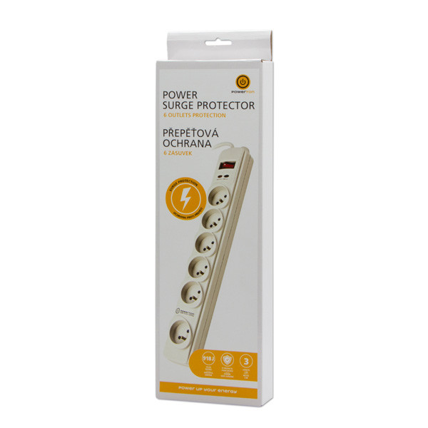 Powerton ENERGY PLUGIX, 3m, 6 zásuvek, bílá, LED indikace