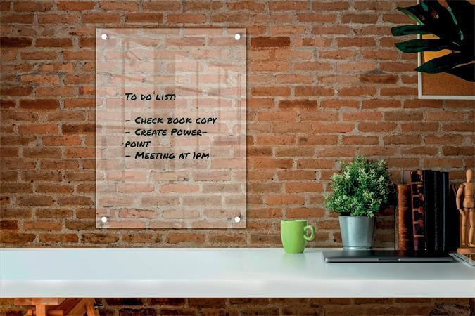 Mini akrylová tabule prémiové kvality pro psaní poznámek, zapisování myšlenek, nápadů nebo důležitých dat. Užitečný doplněk každého domácího nebo kancelářského pracovního prostoru. Stylový průchozí rohový upevňovací systém poskytuje bezpečnou montáž na stěnu.