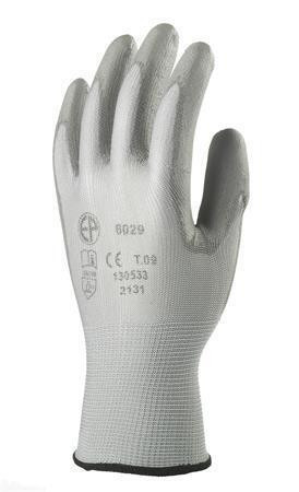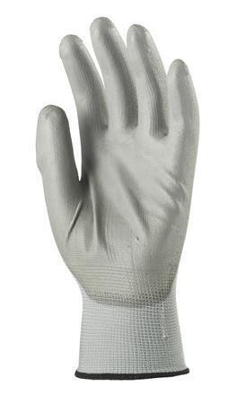 Pracovní rukavice máčené na dlani a prstech v polyuretanu, velikost 9, šedé