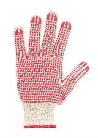 Pracovní rukavice šité z bavlny s protiskluzovými terčíky z PVC, velikost 7, bílá/červená