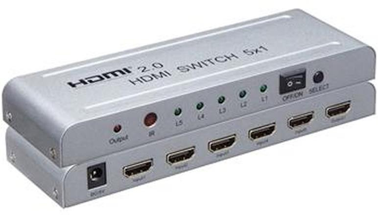PremiumCord 4Kx2K@60Hz HDMI switch 5:1 kovový s dálkovým ovladačem a napájecím adaptérem