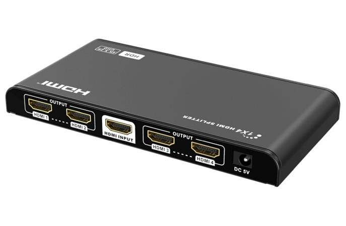 Rozbočovač HDMI umožňuje připojení až 4 HDMI displejů současně. Rozbočovače fungují s většinou zařízení HDMI a poskytují to nejlepší z digitálních audio a video signálů s rozlišením HD až 4K. LED zobrazují stav napájení a také to, které výstupy jsou aktivní.