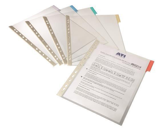 Pevné barevné rozlišovače, barevný okraj, pevná lišta s univerzálním děrováním pro zakládání.