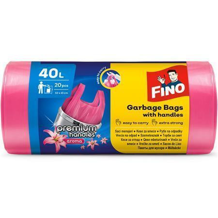 Pytle na odpadky "Premium handles Aromatic", růžová, s vůní bílých květů, 40 l, 20 ks, FINO