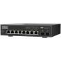 QSW-L3208-2C6T má šest portů 10GbE RJ45 a dva kombinované porty SFP+/RJ45, které umožňují flexibilní optická (SFP+) a měděná (RJ45) připojení k jedinému switchi. Výsledkem je plynulý přenos souborů a streamování a sdílení multimédií. Při použití portů RJ45 se doporučují kabely Cat 6 nebo vyšší, které podporují až 10GbE a zajišťují efektivnější přenos dat. Porty 10GbE SFP+ jsou zpětně kompatibilní s moduly 1GbE SFP, zatímco porty 10GbE RJ45 podporují sítě 10G/5G/2,5G/1G.