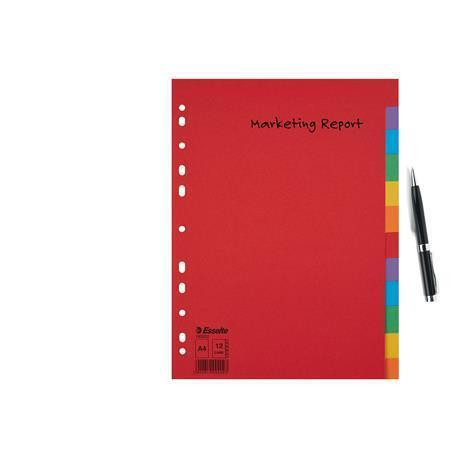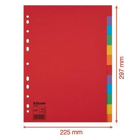 Rejstříky "Economy", mix barev, karton, A4, 12 dílů, ESSELTE