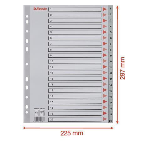 Rejstříky, šedá, A4, plast, 1-20, ESSELTE