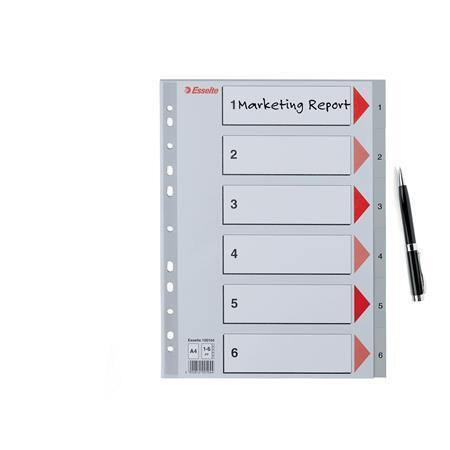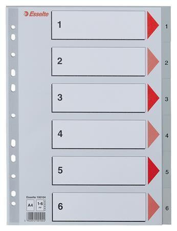 Rejstříky, šedá, A4, plast, 1-6, ESSELTE