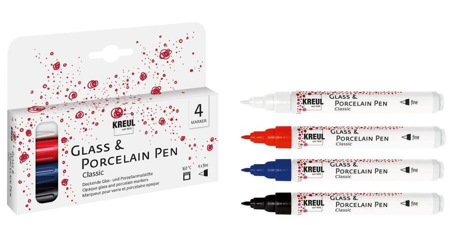 KREUL Glass & Porcelain Pen Classic fine Set of 4