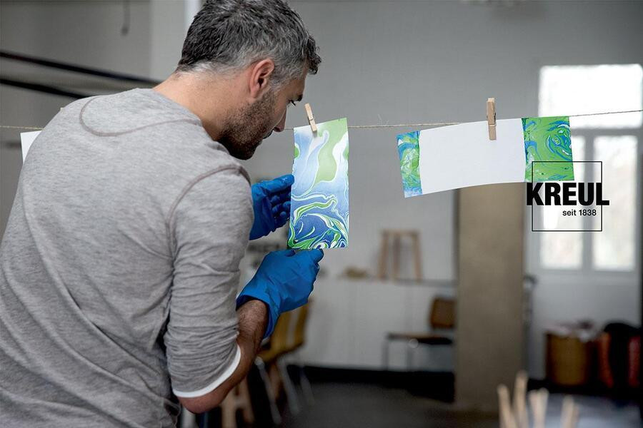 Při mramorování postupujte rychleji, aby se zabránilo vzniku barevného filmu