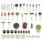 Sada 100 kusů různorodého nářadí - od brusných papírů po vrtáky. Praktický kufřík všechny komponenty uchová přehledně na jednom místě.