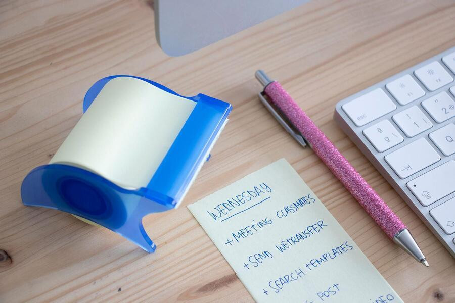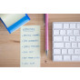 Samolepicí bloček s dávkovačem, ve standardní žluté barvě. Vyrobeno z papíru s certifikací FSC s lepidlem na vodní bázi.
