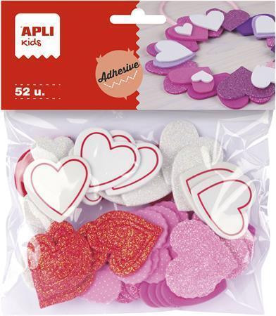 Samolepicí pěnovka "Eva Sheets", mix barev, se třpytkami, tvar srdce, 52 ks, APLI 13283