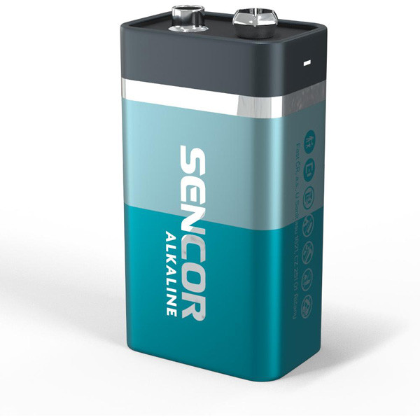 Popis  Baterie jednorázová alkalická, klasická, 9V, 9V, Sencor, blistr, 1-pack