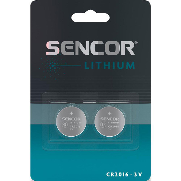 Baterie jednorázová lithiová, knoflíková, CR2016, 3V, Sencor, blistr, 2-pack