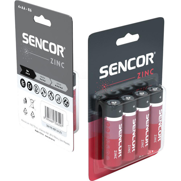 Sencor Jednorázová zinkouhlíková baterie AA, 4-pack